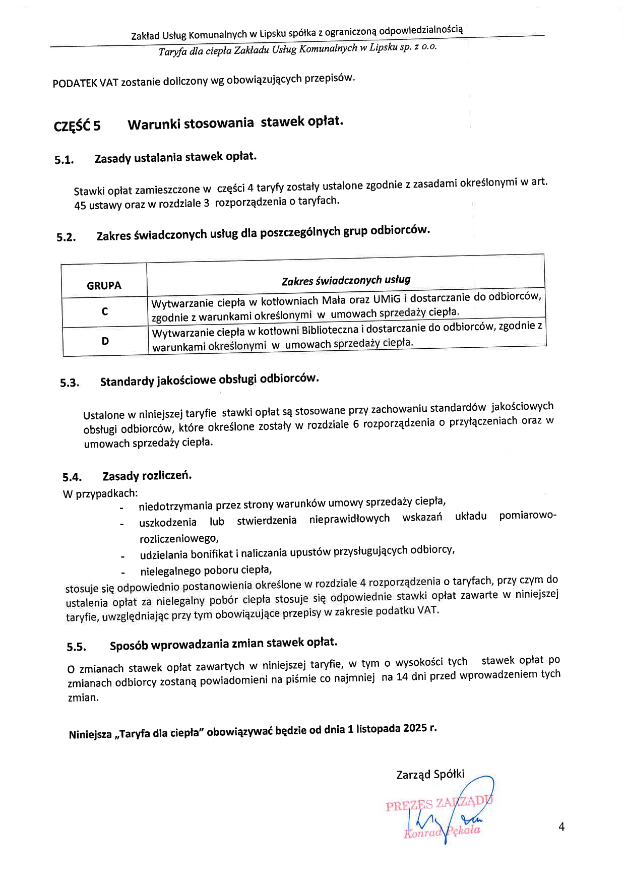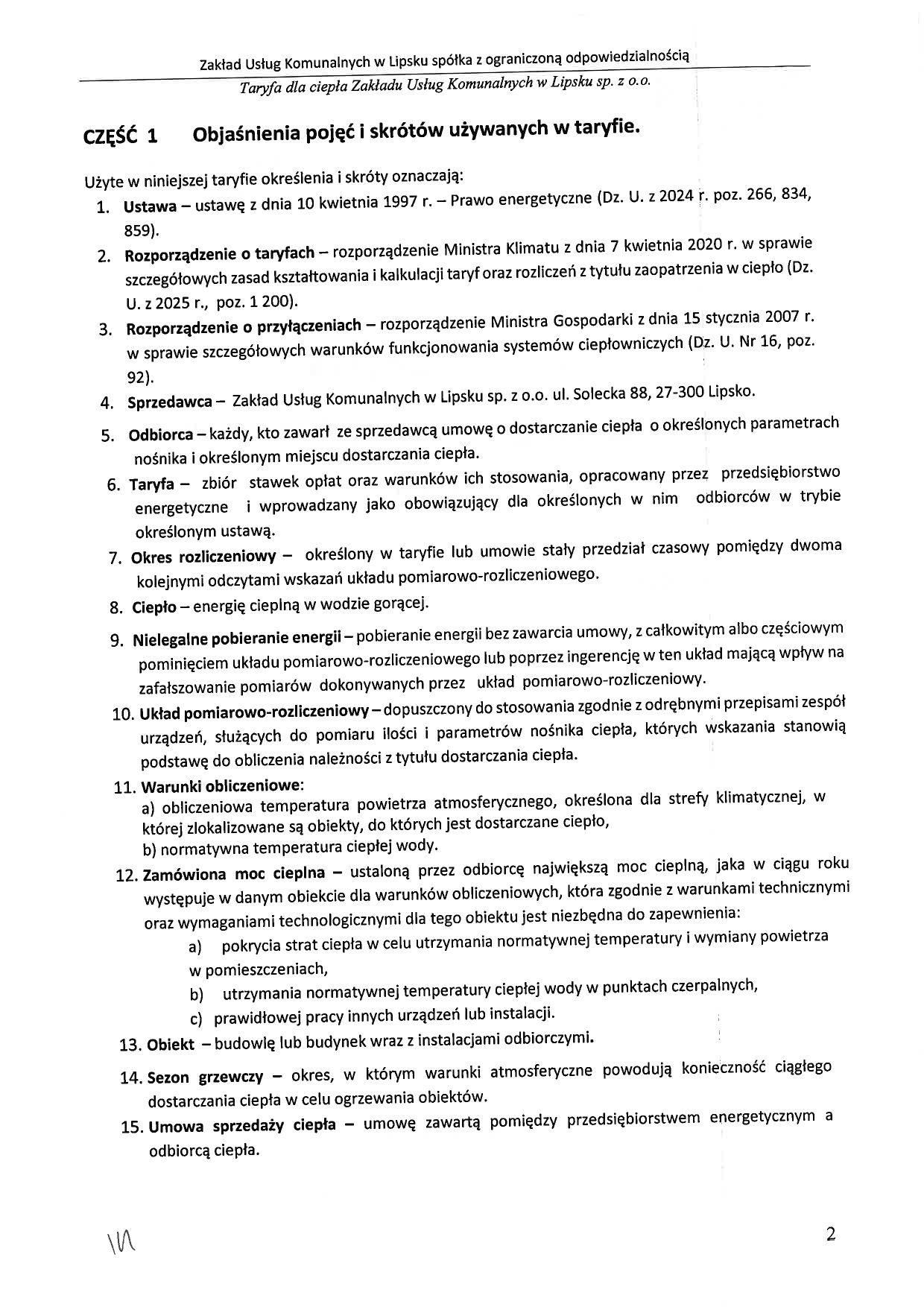 TARYFA DLA CIEPŁA obowiązująca od dnia 01 listopada 2025 r.