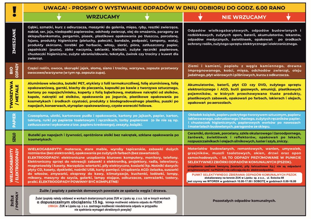 Przedstawiamy aktualny harmonogram odbioru odpadów komunalnych oraz zasady segregacji odpadów obowiązujący od stycznia do czerwca 2023 roku oraz zasady segregacji i informacje dla wspólnot.